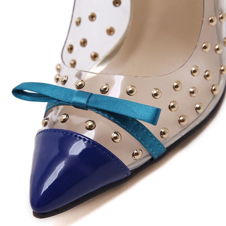 Kvinnors Pvc Bowknot Rivet Pointed Toe Stiletto Sandals