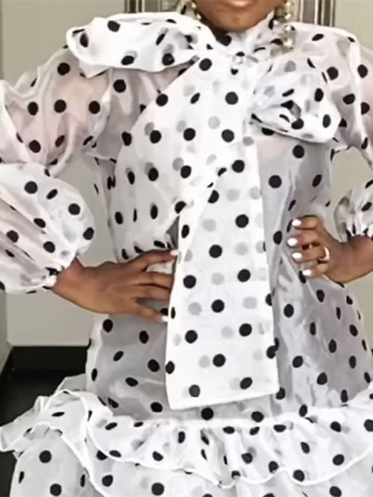 Kvinnors Rosettkrage Över Knätrycktröja Med Prickar