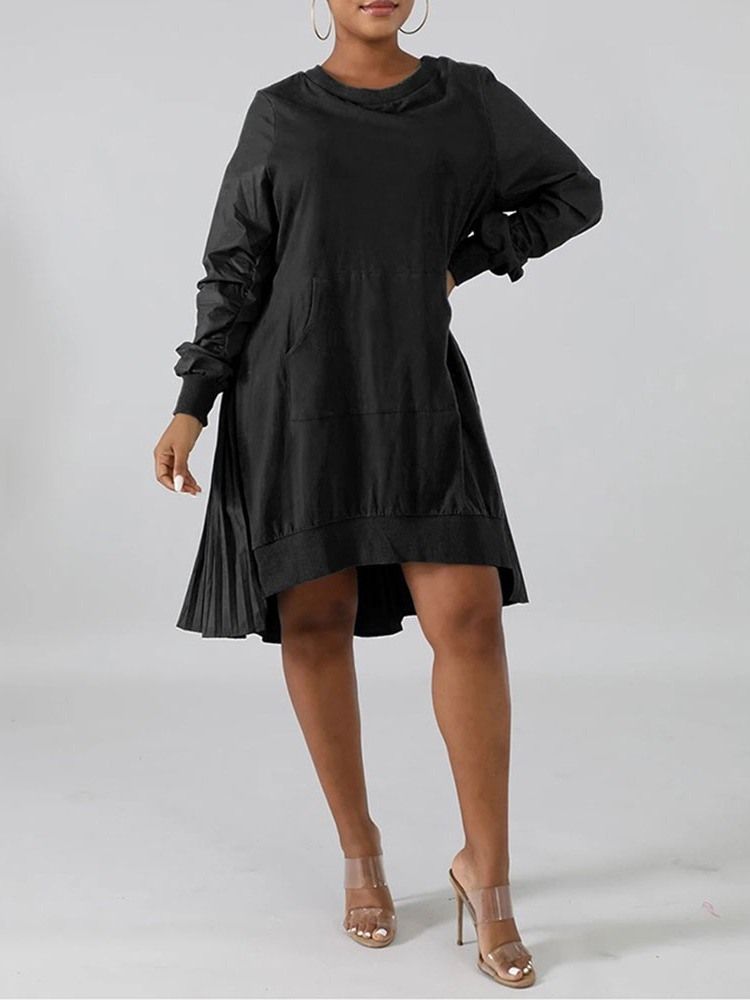 Kvinnors Rundhalsad Långärmad Mittkalv Vårklänning