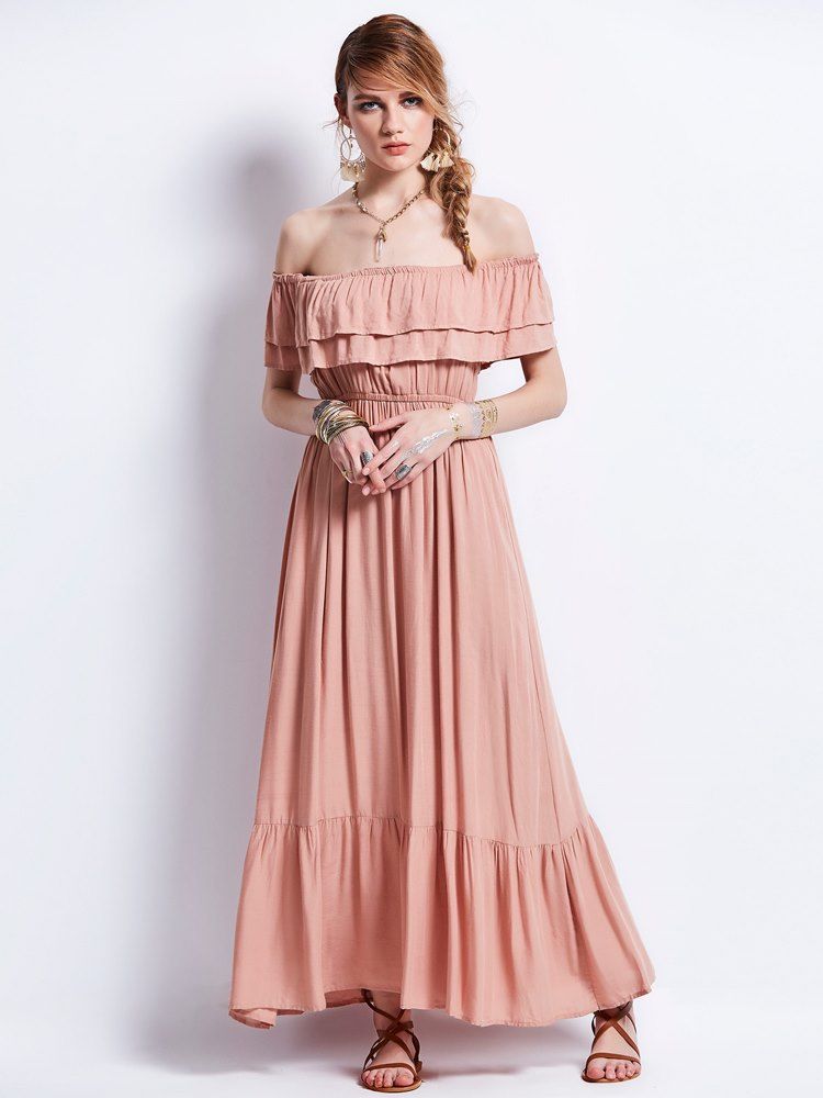 Kvinnors Slash Neck Falbala Expansion Maxiklänning