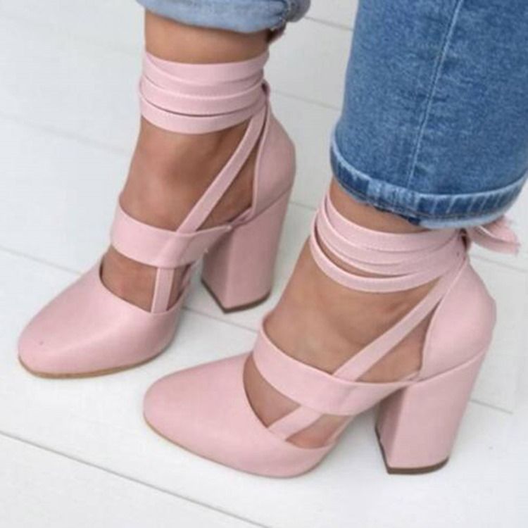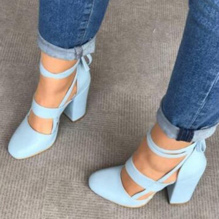 Kvinnors Snörning Med Rund Tå Och Rem Med Hög Klack (5-8 cm) Tunna Skor