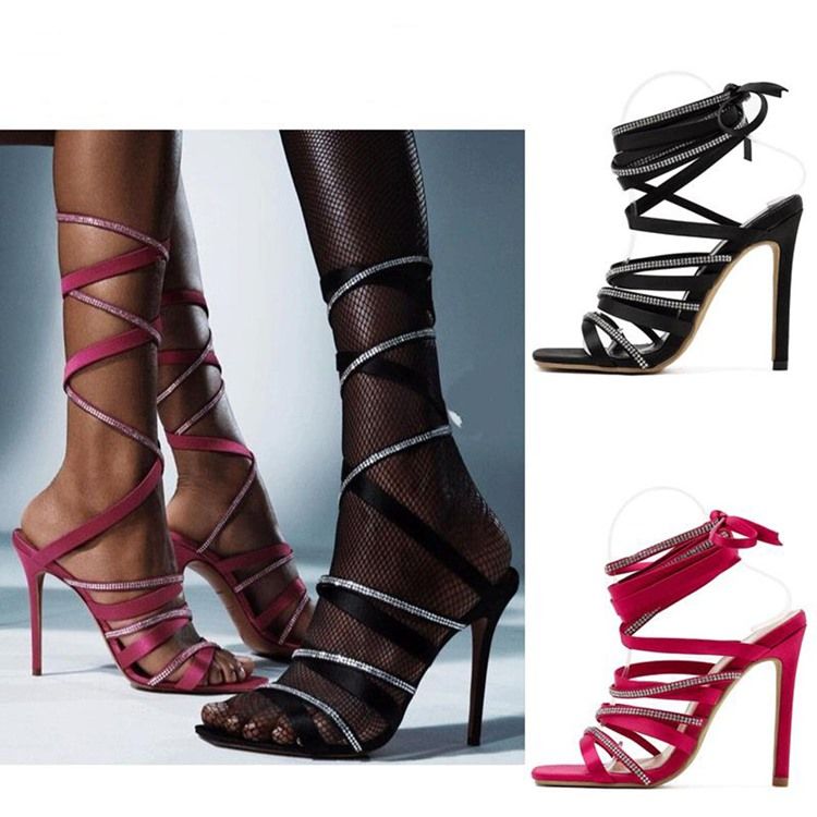 Kvinnors Snörning Stilettklack Kvadratisk Tå Strassandaler