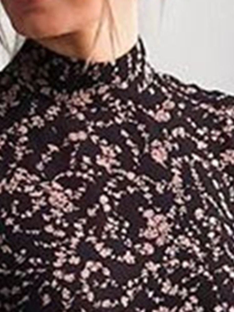 Kvinnors Stativ Krage Långärmad Tryck Blommig Söt Klänning