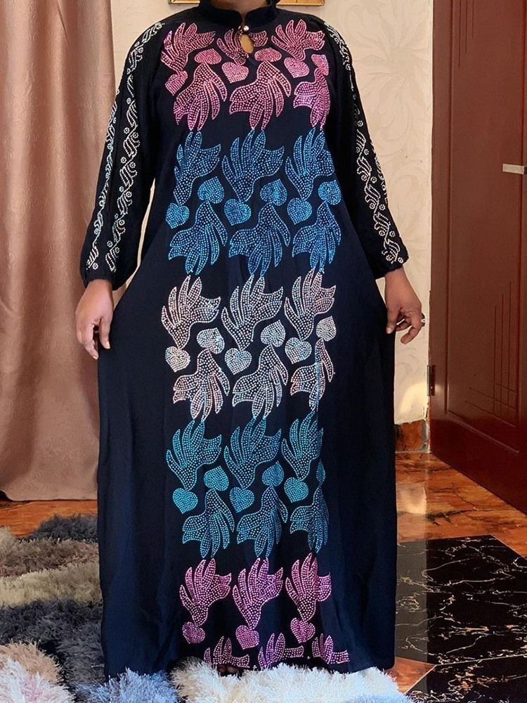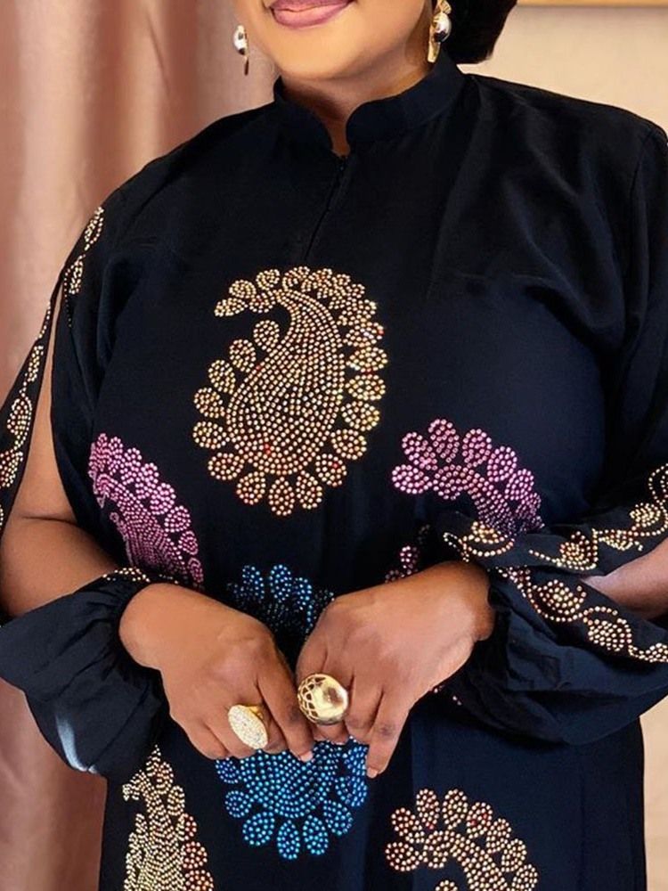 Kvinnors Strass Klänning Med Hög Midja Och Golvlång Stativkrage