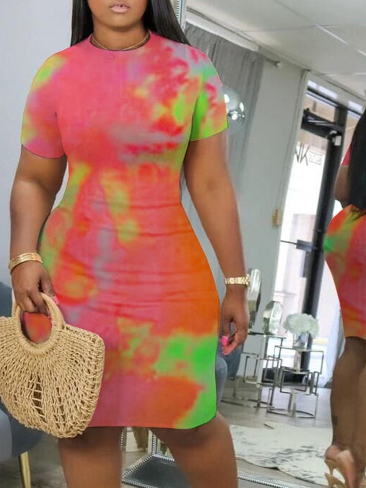 Kvinnors Tie-dye Knälång Kort Ärm Bodycon-klänning I Midja