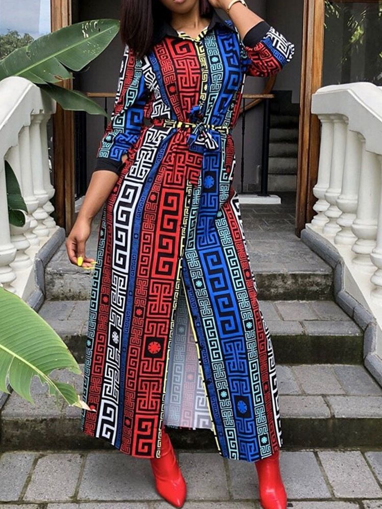 Kvinnors Trekvartars Ärm Golvlång Snörning Sommar Färgklänning