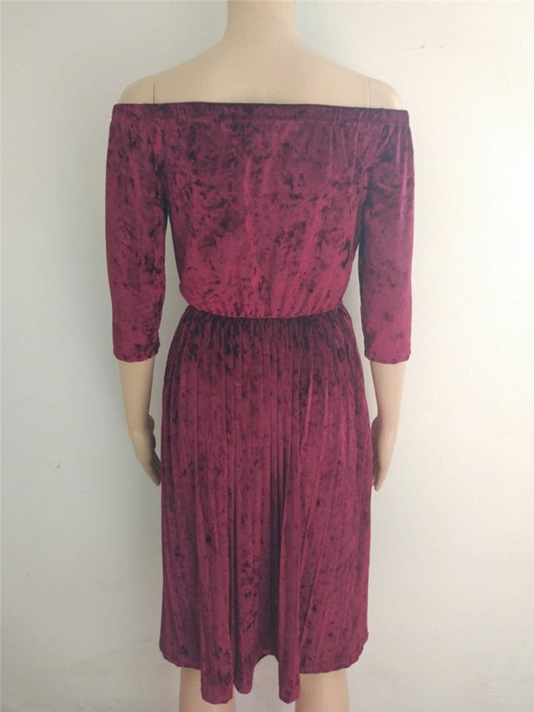 Kvinnors Trekvartars Ärm Slash Neck Mid-calf Fall Pleated Dress