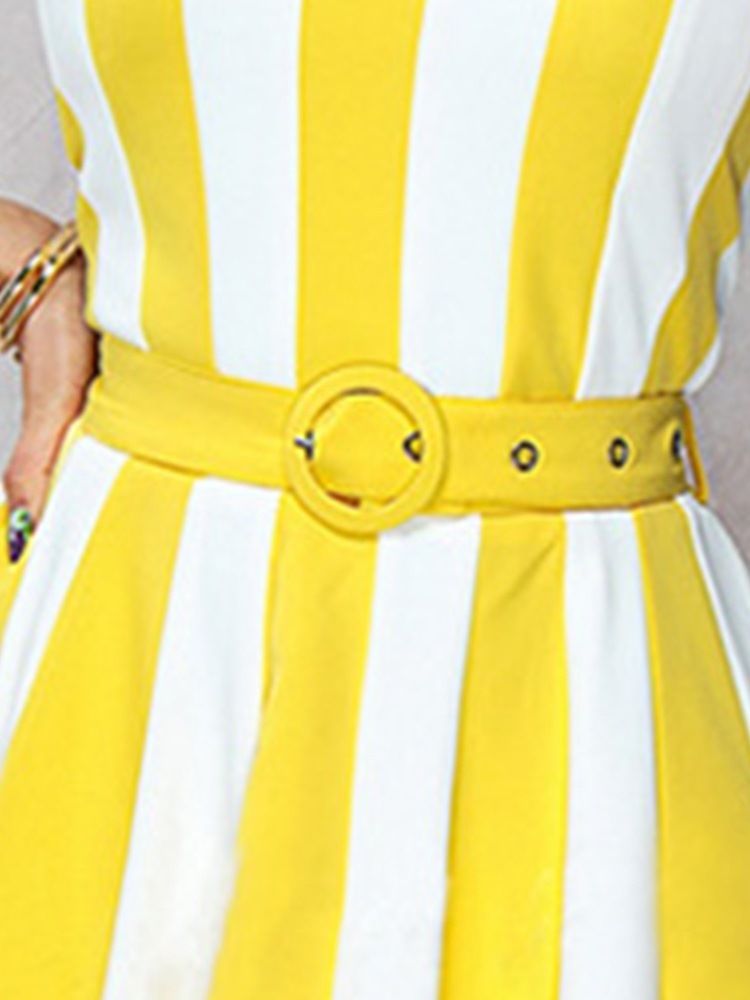 Kvinnors Tryck Golvlång Ärmlös Klänning Med Söta Ränder