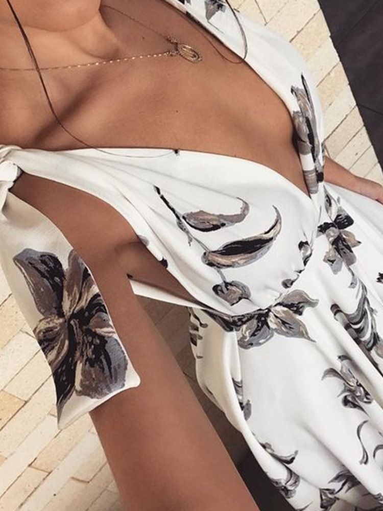 Kvinnors Tryck Golvlång V-ringning Maxiklänning