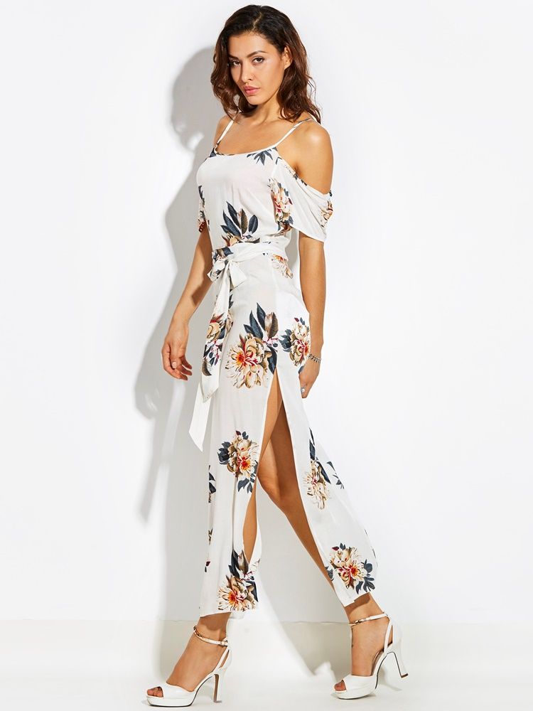 Kvinnors Tryck Kall-axel- Asymmetrisk Maxiklänning