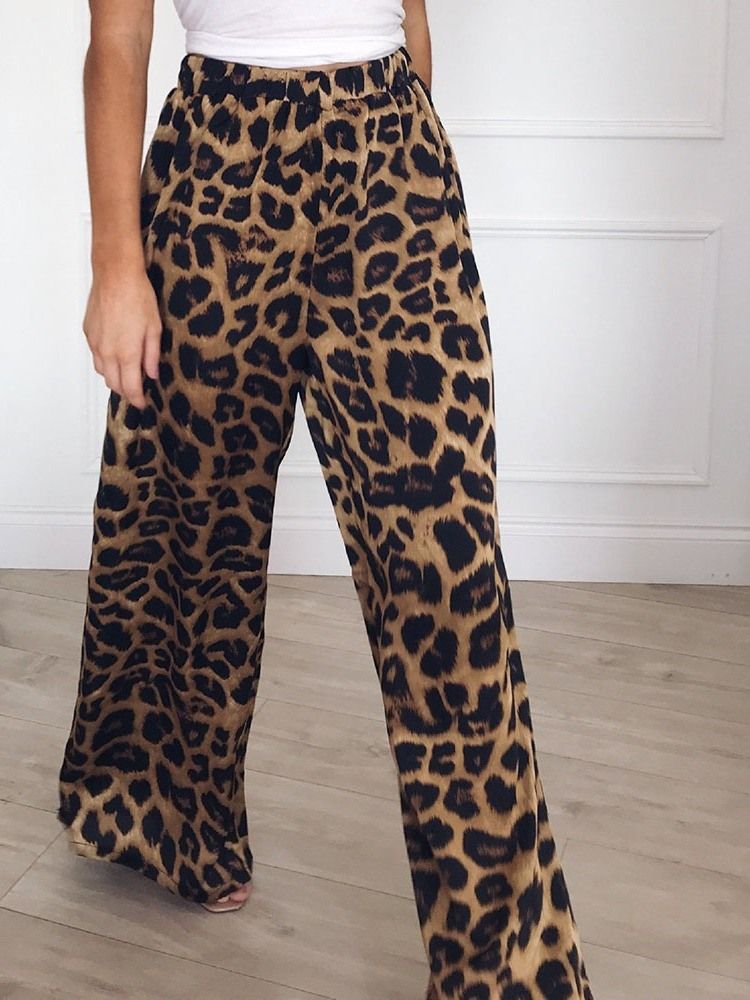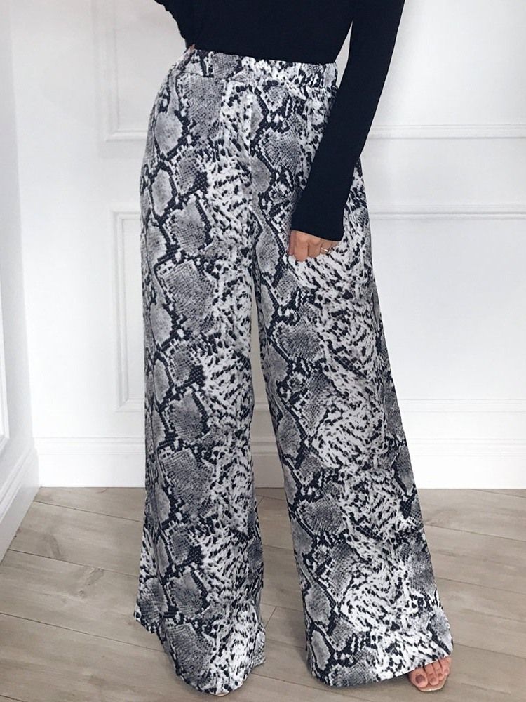 Kvinnors Tryck Loose Mid Waist Full Length Casual Byxor