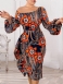Kvinnors Tryck Mid-kalv Nio Poäng Ärm Mode Hög Midja Bodycon Klänning