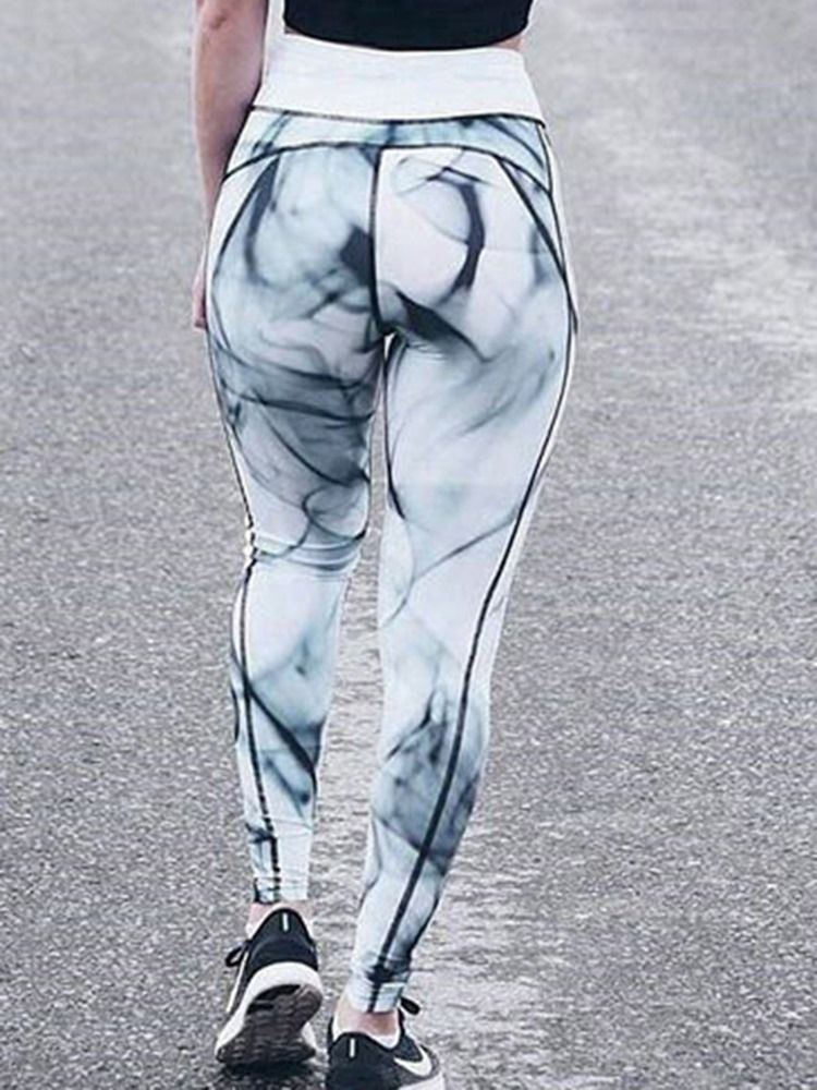 Kvinnors Tryck Snabbtorkande Färgblock Andningsbar Hel Längd Leggings Yogabyxor Hög Midja Tiktok Leggings