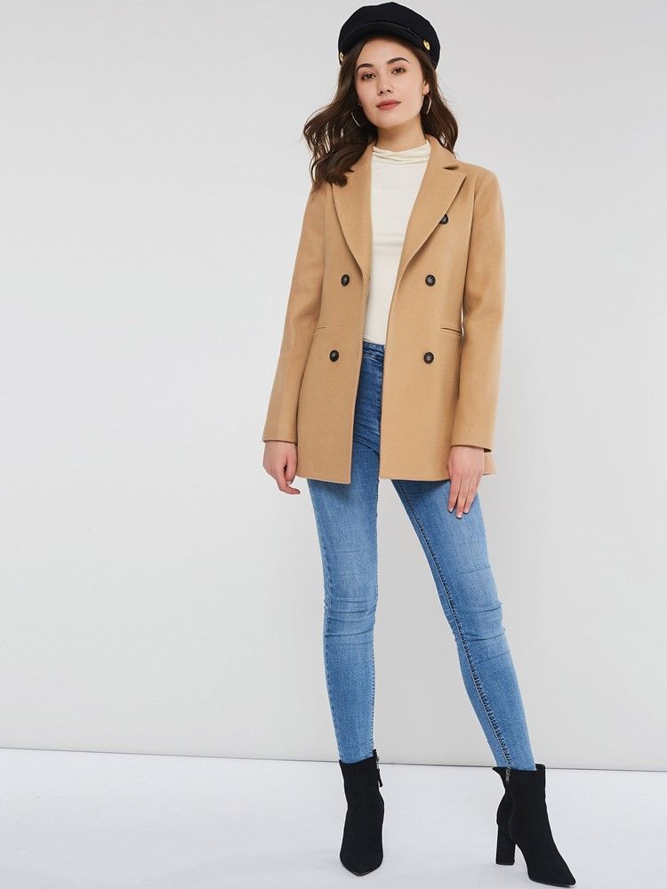 Kvinnors Tunna Dubbelknäppta Knapp I Mellanlång Vinterrock