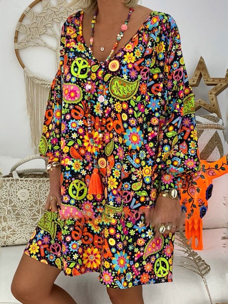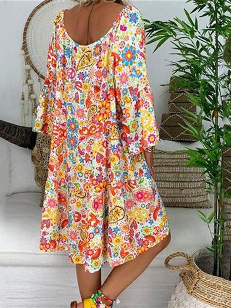 Kvinnors V-ringning Blommig Ovanför Knä Rak Casual Klänning