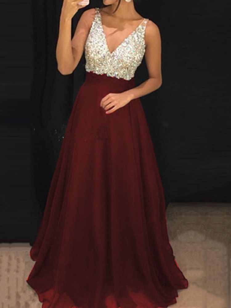 Kvinnors V-ringning Golvlång Ärmlös Tröja Med Midjeklänning