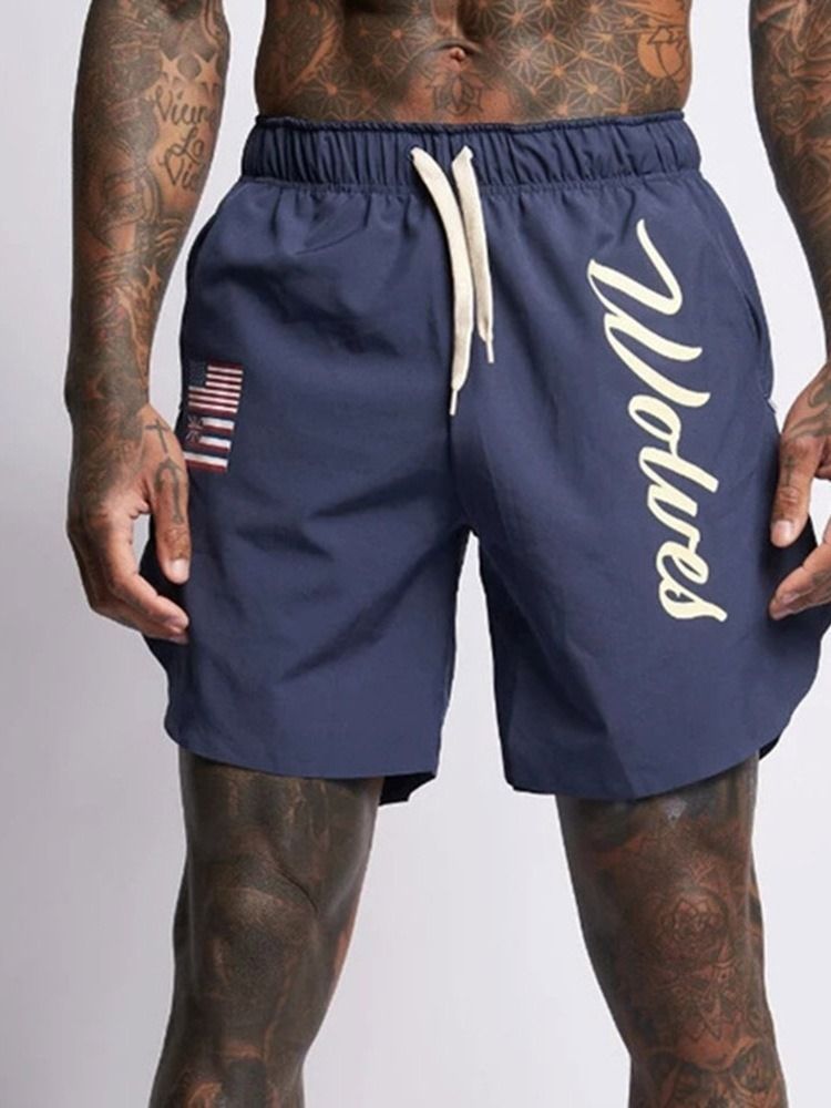 Lace-up Letter Slim Lace-up Shorts För Män