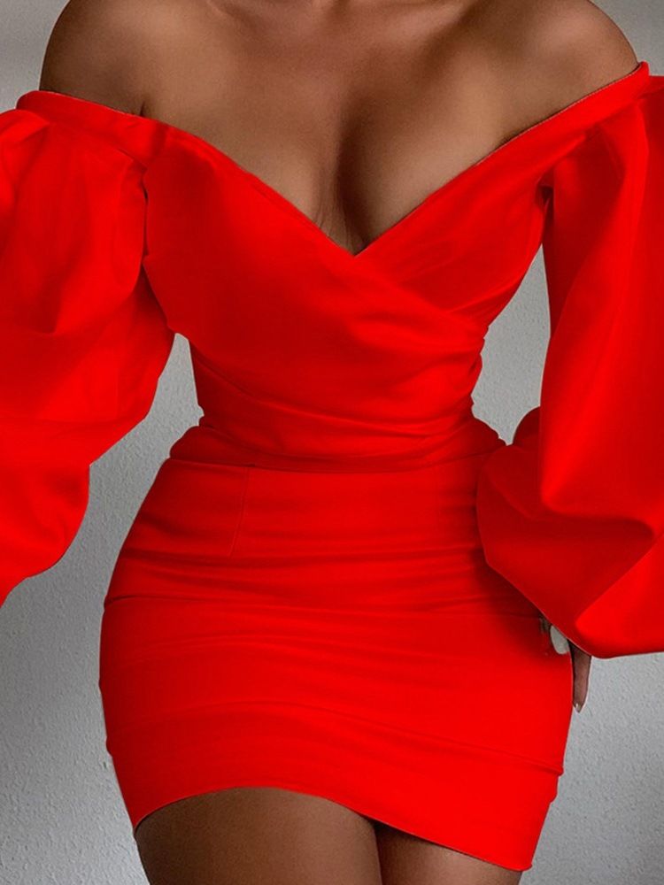 Långärmad Bodycon-klänning Med V-ringning Över Knäet För Kvinnor