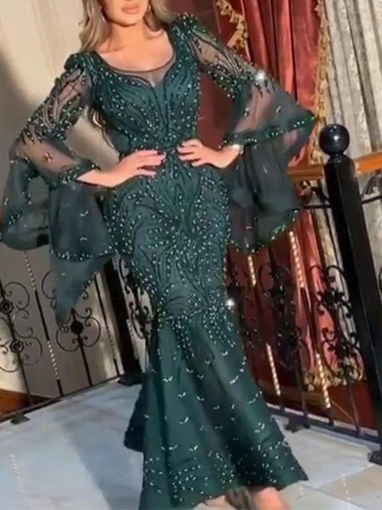 Långärmad Genomskinlig Sjöjungfru Hög Midja Damklänning