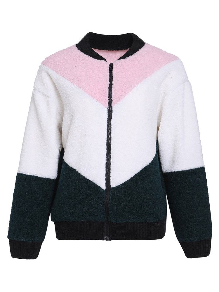 Långärmad Löst Dragkedja Regular Stand Collar Damjacka
