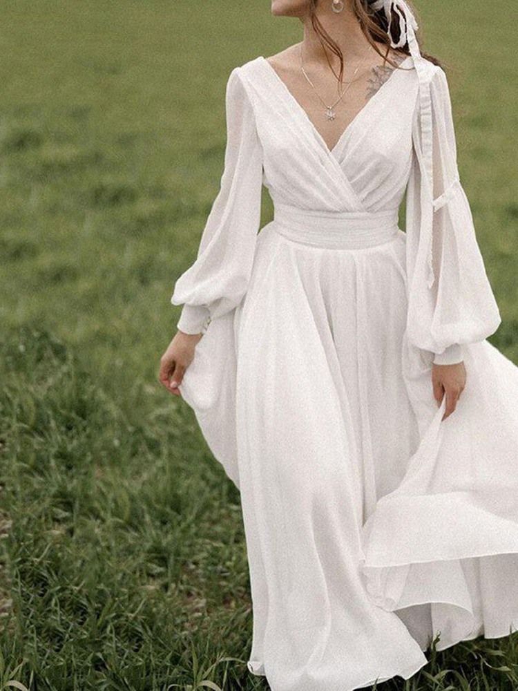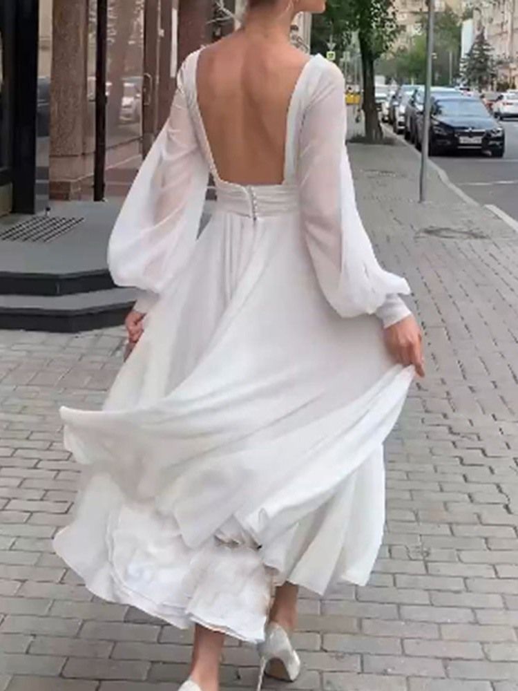 Långärmad Rygglös V-ringad A-linjeformad Klänning För Kvinnor
