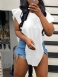 Lapel Asymmetrisk Plain Kortärmad Mid-längs Damblus