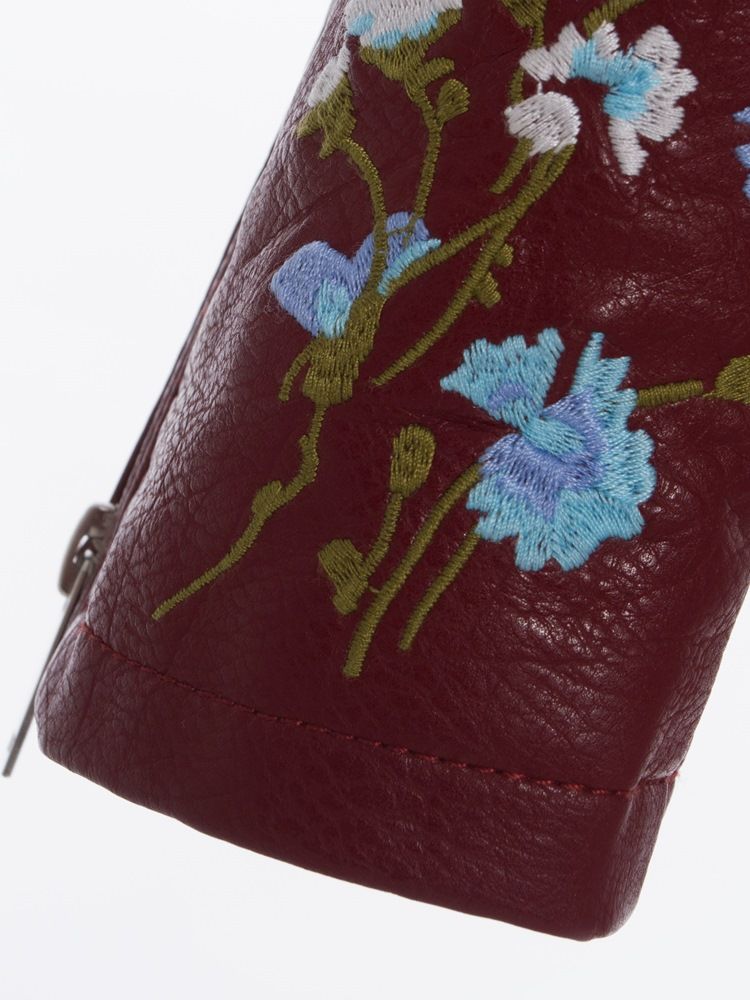 Lapel Floral Broderad Plain Pu-jacka För Kvinnor
