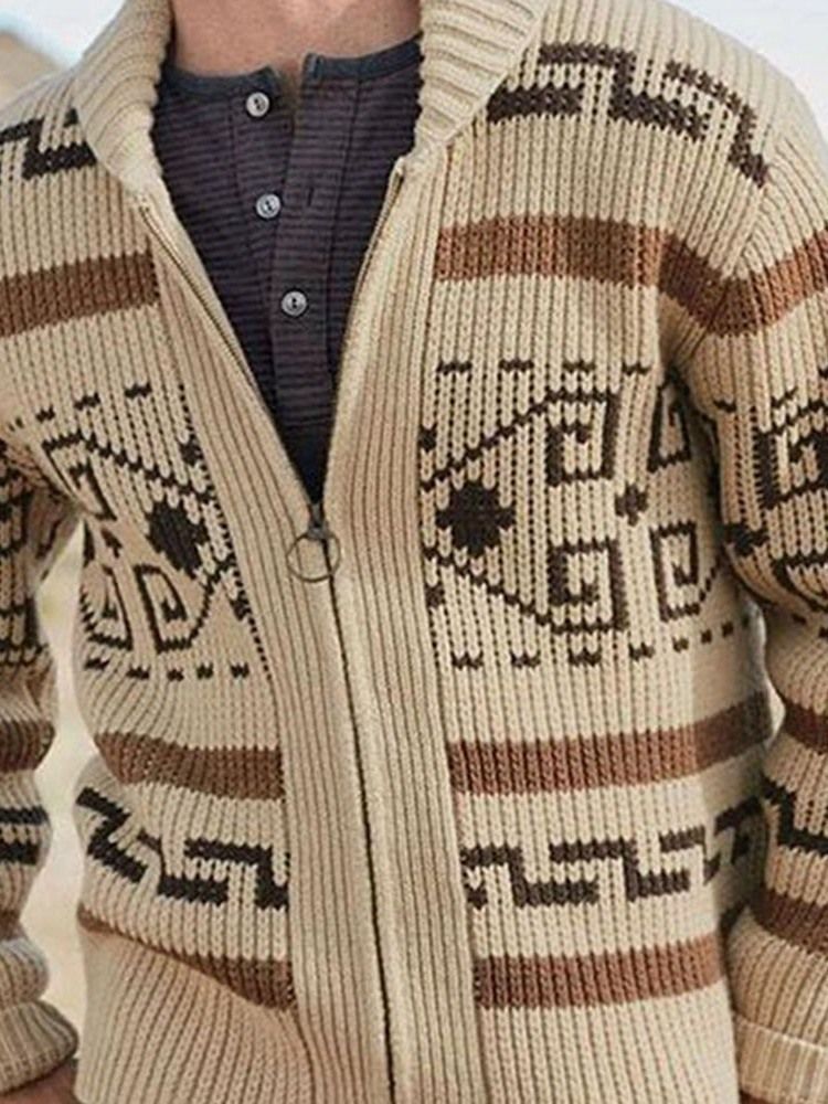 Lapel Herrmönster Geometrisk Standard Löst Vintertröja