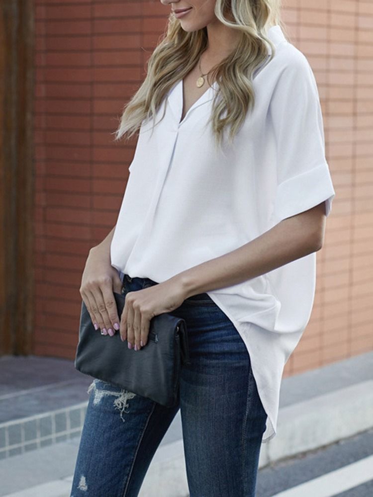 Lapel Plain Regular Short Sleeve Women's Standardblus