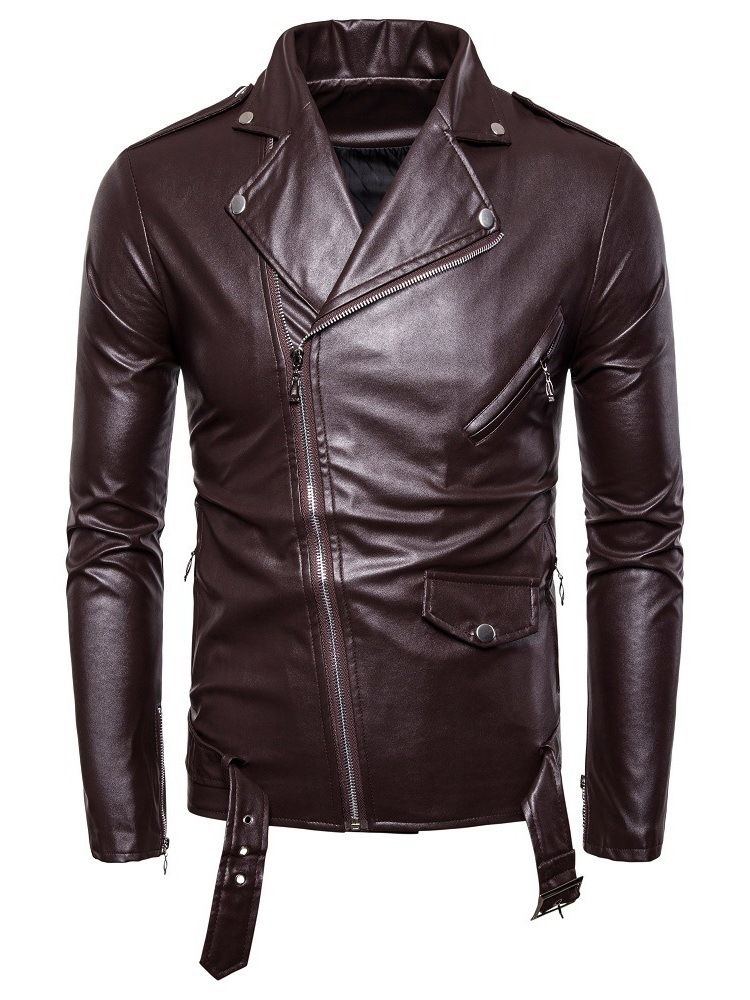 Lapel Plain Zipper Herrjacka