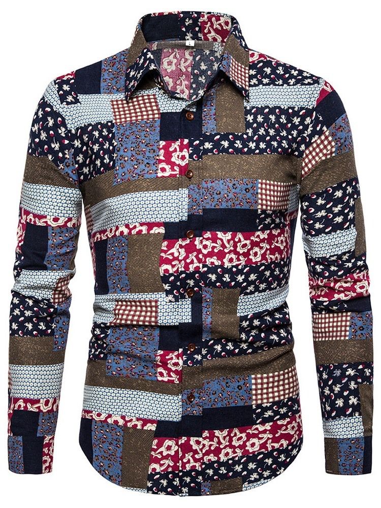 Lapel Print Floral Men's Slim Single-breasted Shirt