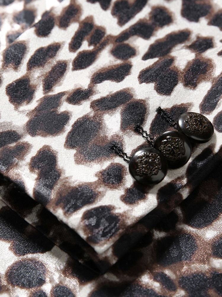 Leopard Print Patchwork Slim Fit Blazer Suits För Män