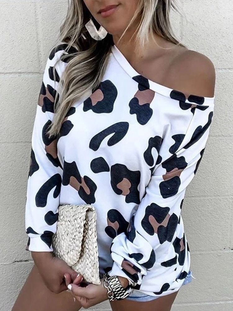 Leopard Standard Långärmad T-shirt För Kvinnor