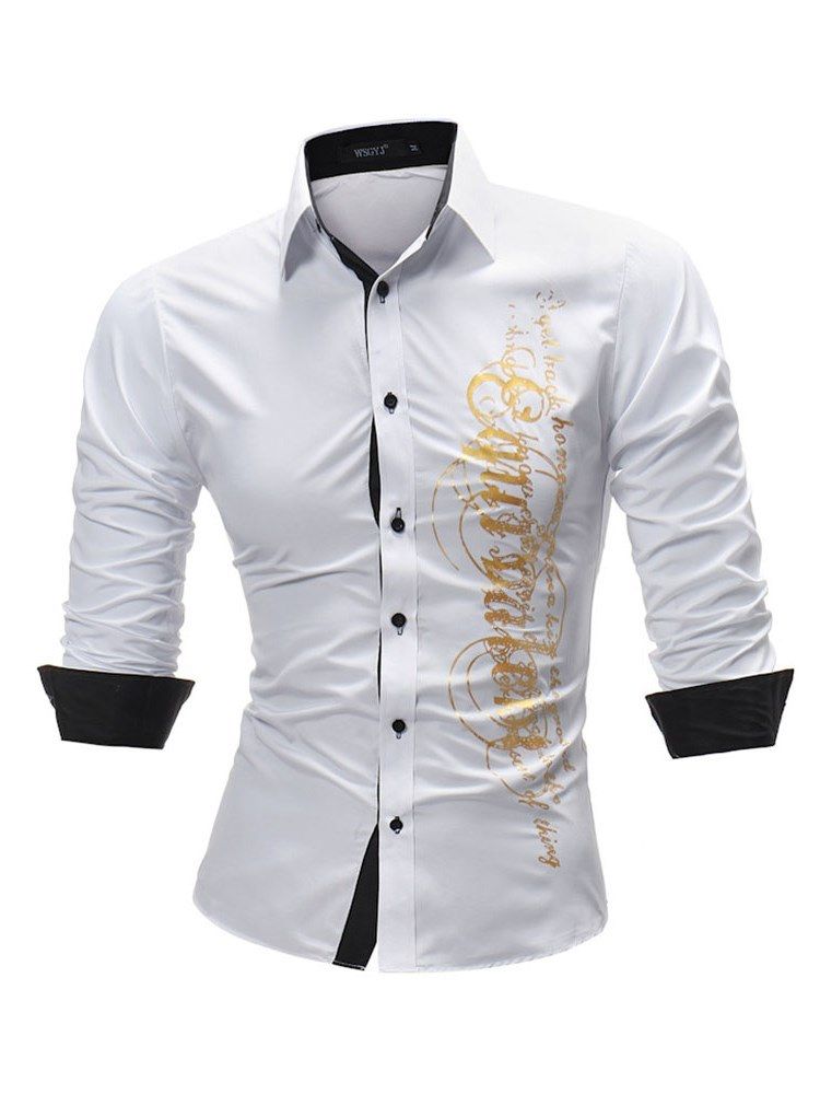 Letter Printed Slim Fitted Mens Långärmade T-shirts