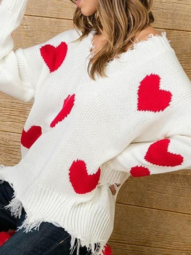 Lös Tröja Med Tunn Tunn V-ringning För Kvinnor