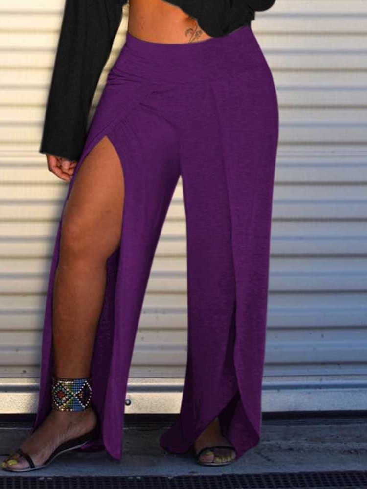 Loose Split Plain Wide Legs Full Length Casual Dambyxor
