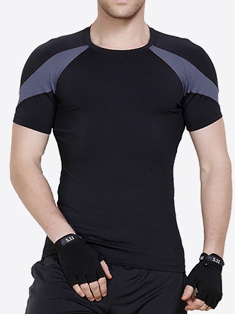 Män Color Block Kort Ärm Snabb Torr Gym Sport T-shirt