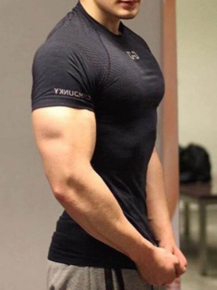 Män Solid Anti-sweat Print Kortärmad Gym Sports T-shirt
