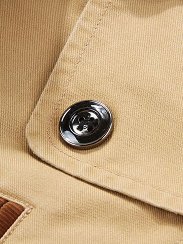 Mäns Färgblock Standardknapp Fall Casual Trenchcoat