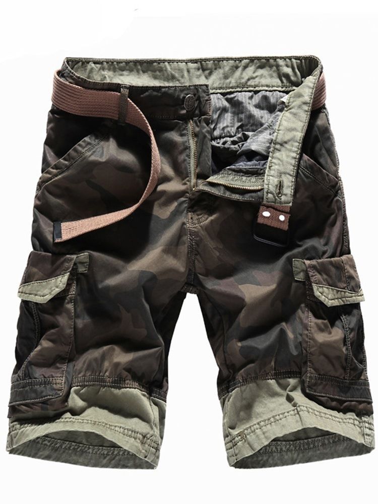 Mäns Kamouflage Rak Ficka Mitt Midja Blixtlås Shorts