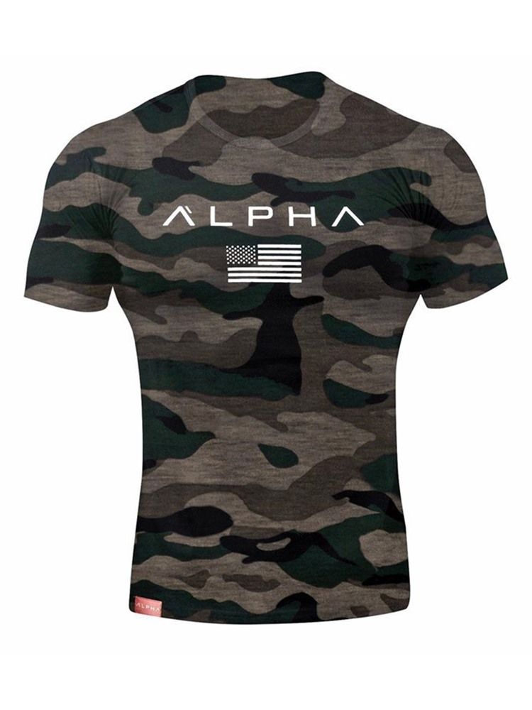 Mäns Kamouflage-tröja Gym Sports T-shirt