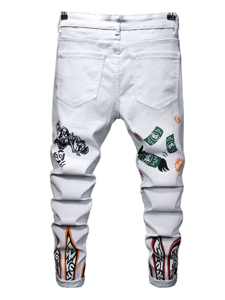 Mäns Utskrivna Brev European Mid Waist Jeans