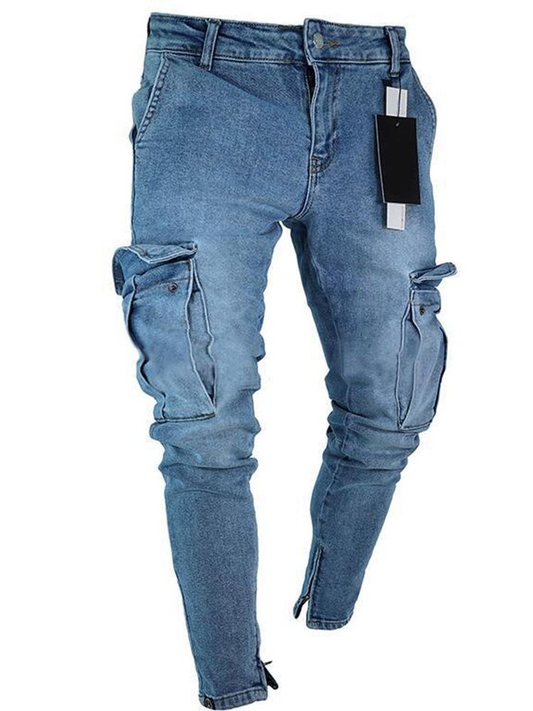 Mäns Vanliga Slitna Pennbyxor European Zipper Jeans