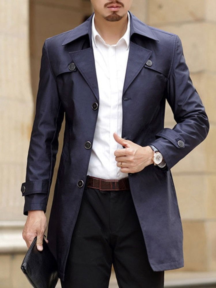 Mellanlängd Button Revers Casual Trench Coat För Män