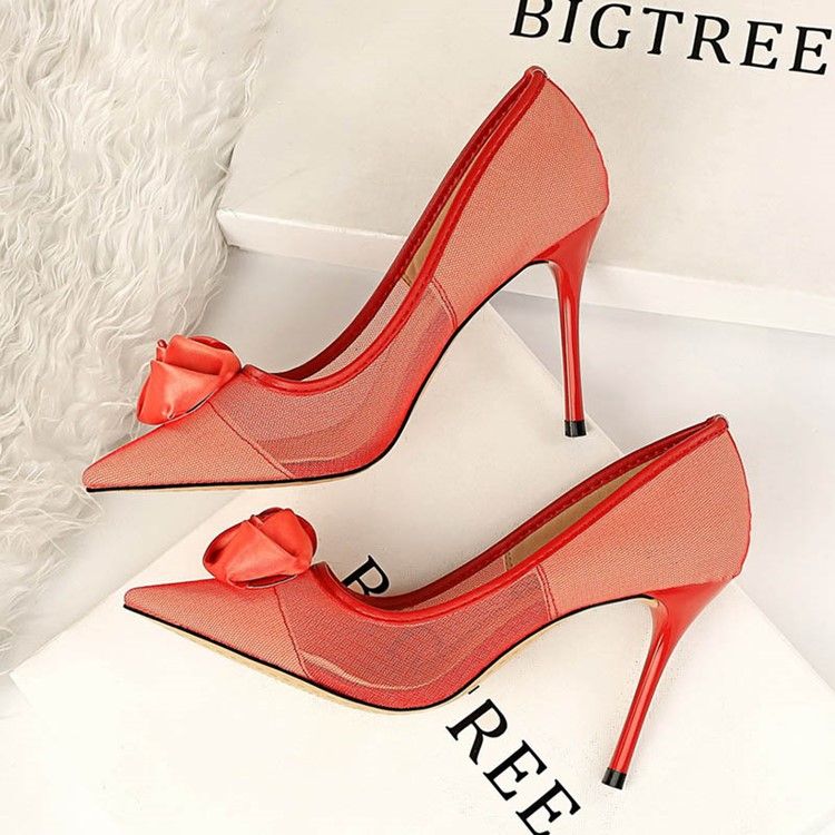 Mesh Pointed Toe Stiletto Heel Slip-on Dam Pumps