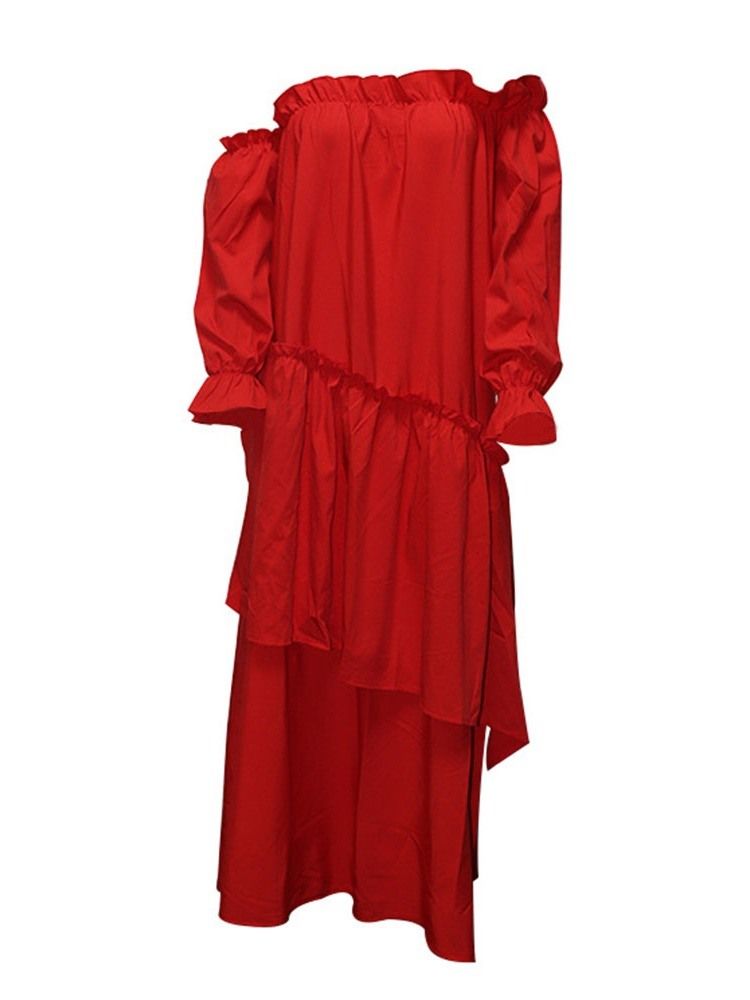 Mid-calf Långärmad Off Shoulder Pullover Plain Damklänning