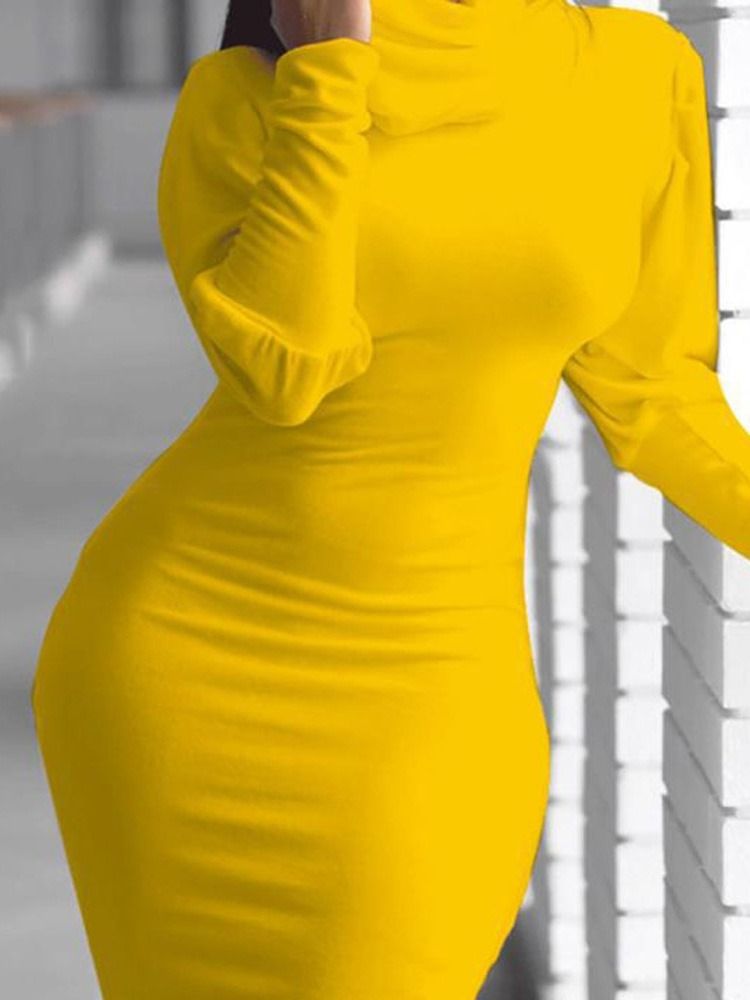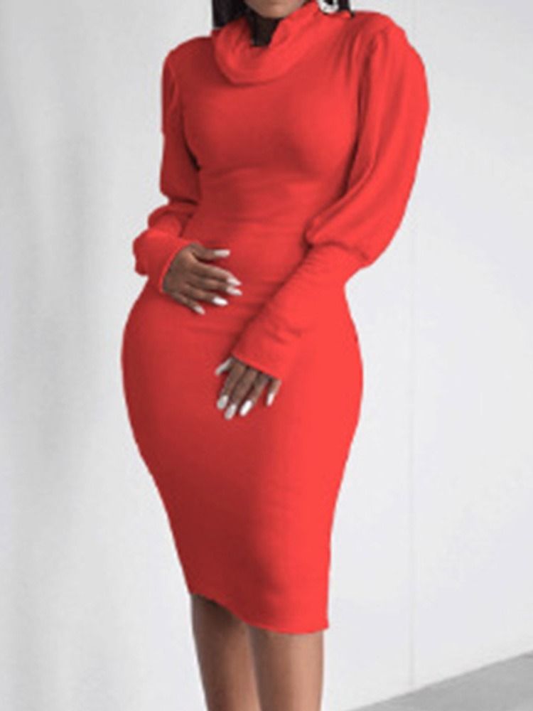 Mid-calf Långärmad Tröja Vanligt Damklänning