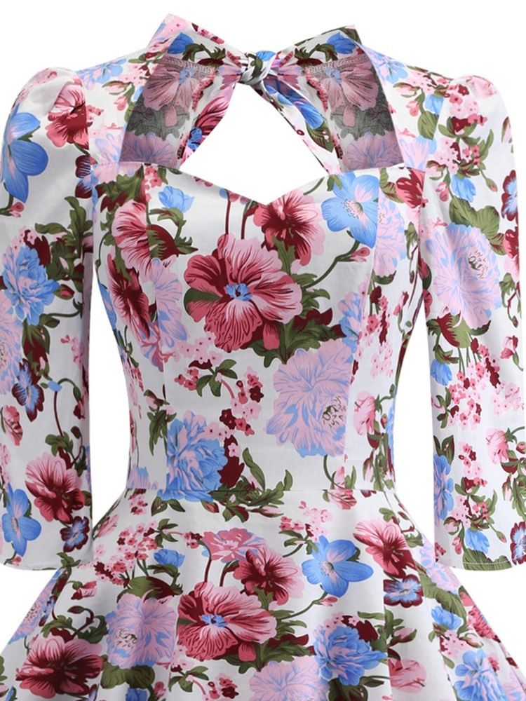 Mid-kalv För Kvinnor Med Tre Fjärdedelar Ärmtryck Vanlig Klänning