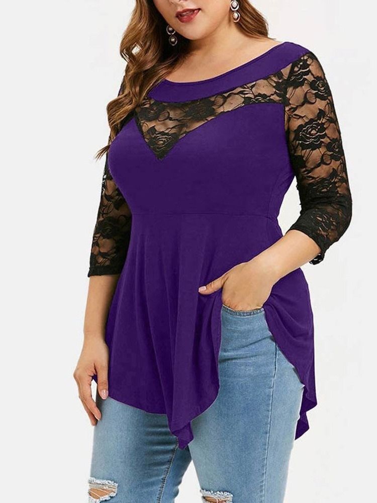 Mid-längd Trekvartärmad Blommig T-shirt Dam