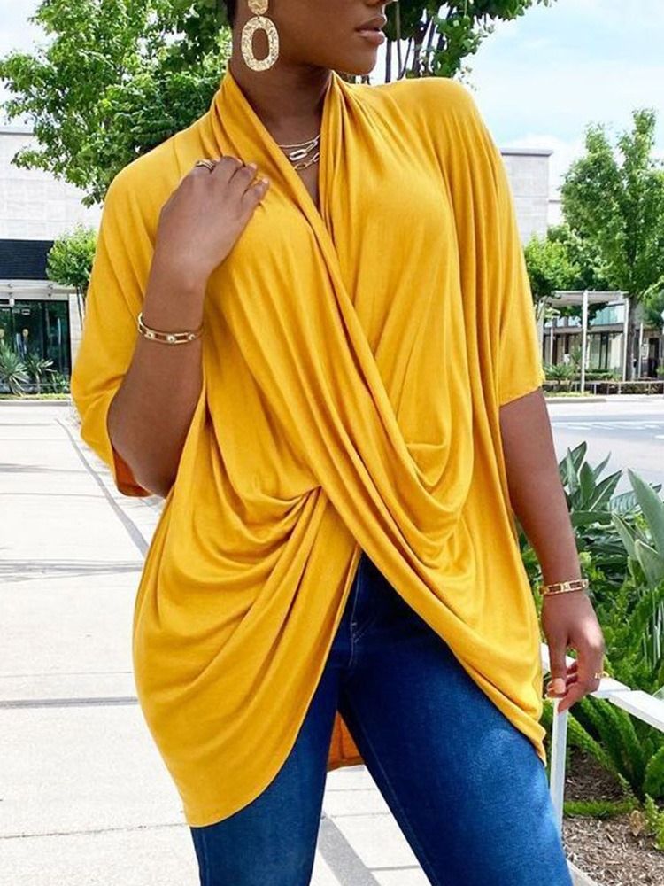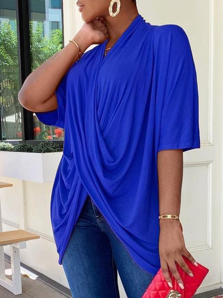 Mid-längd V-ringad Halvärmad Lös Damt-shirt